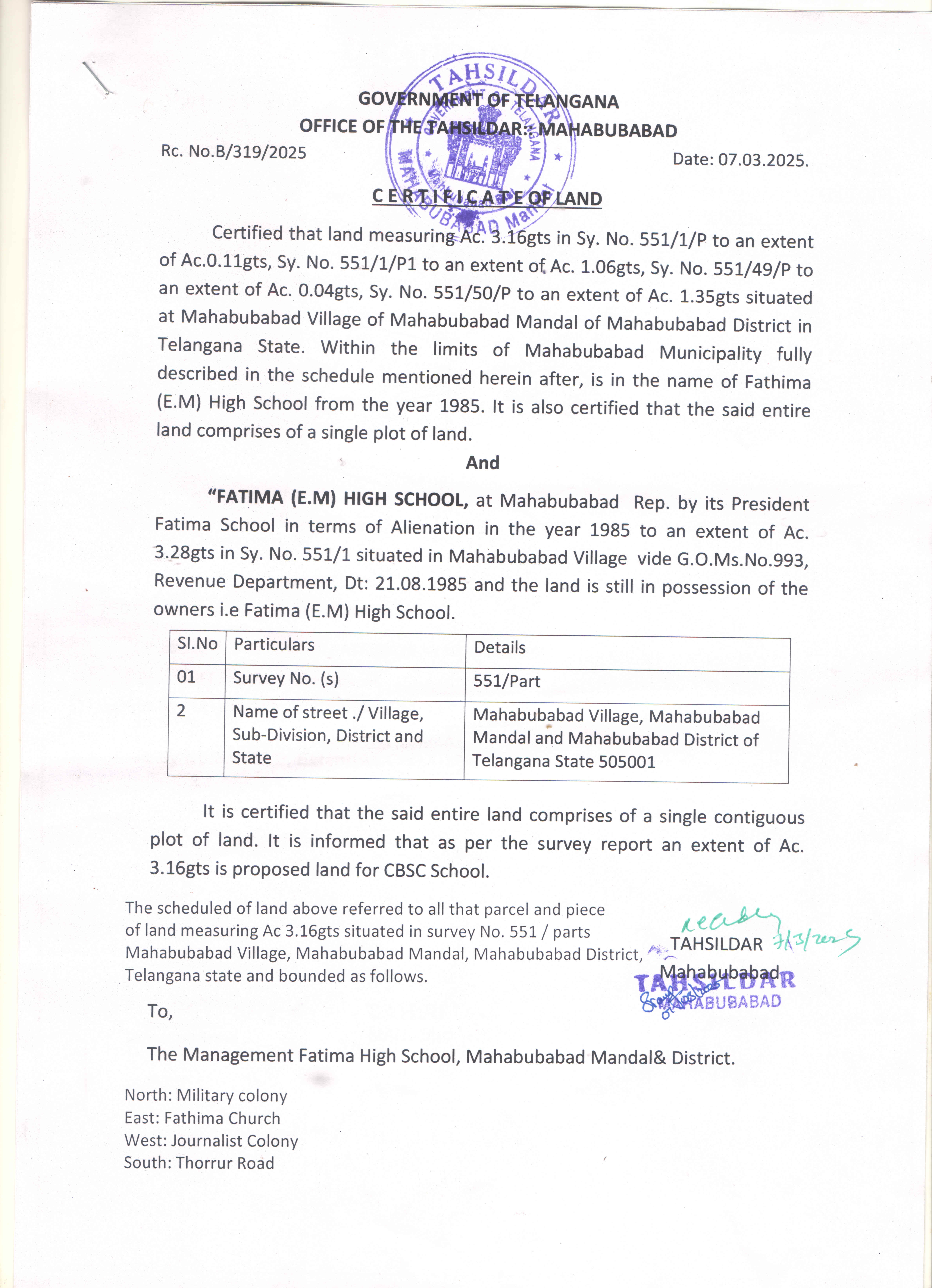 | 4 | COMPLETE ADDRESS WITH PIN CODE | NEAR FIRE STATION, THORRUR ROAD, MAHABUBABAD,506101 |
